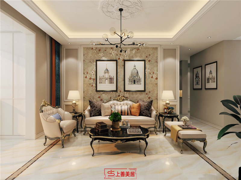 保利堂悅90平現(xiàn)代輕奢風(fēng)格沙發(fā)墻
