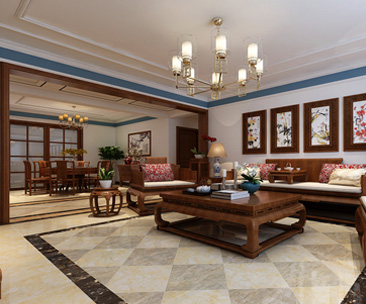 吸取了歐式風(fēng)格的“形神“特征,在設(shè)計上追求空間變化的連續(xù)性和形體變化的層次感。室內(nèi)多采用帶有圖案的壁紙、地毯、窗簾、床罩、帳幔及古典裝飾畫,畫框在造型設(shè)計上既要突出凹凸感。