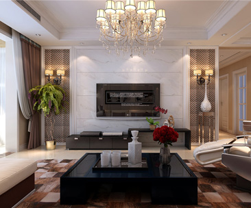 客廳效果圖:客廳效果整體凸顯簡歐的韻味