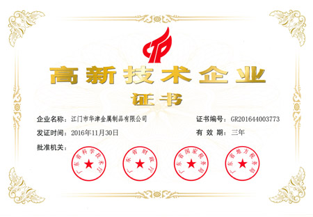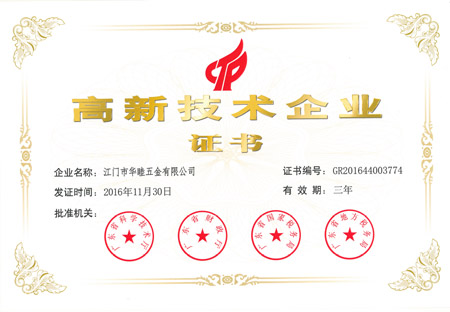 2016年11月30日,本公司之公司江門(mén)華津金屬制品有限公司(以下簡(jiǎn)稱(chēng)“華津”)及江門(mén)市華睦五金有限公司(以下簡(jiǎn)稱(chēng)“華睦”)分別收到由廣東省科學(xué)技術(shù)廳、廣東省財(cái)政廳、廣東省國(guó)家稅務(wù)局及廣東省地方稅務(wù)局共同批準(zhǔn)的《高新技術(shù)企業(yè)證書(shū)》(證書(shū)編號(hào)分別為:GR201644003773號(hào)及GR201644003774號(hào))。